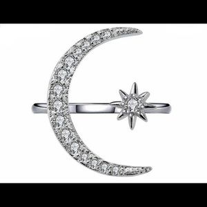 NEW SILVER CELESTIAL MOON & STARS WIDE BAND RING