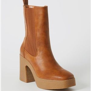 Qupid Brown Chunky Zipper Heeled Ankle Boots Size 7