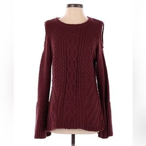 Evereve John + Jenn Beige Open Knit Cold Shoulder Boho Sweater Size XS/S