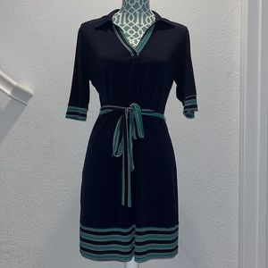 NWT Josepha Navy Blue and Pink Collard Short Sleeve Dress Ribbed Jersey