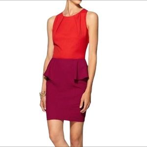 Cache Color block Burgundy & Black Sheath Dress With Metal Accent Detail Size 10