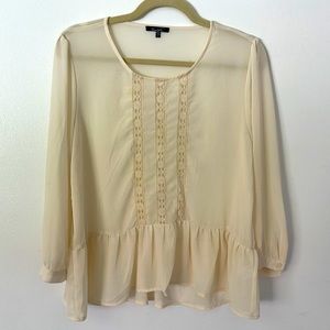 Banana Republic Cream V-Neck Top w/ Braided Sleeve Detail | Size S
