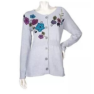 Denim & Co. Cardigan Sweater Womens 2X Button Jacket Embroidery Grandmacore NEW