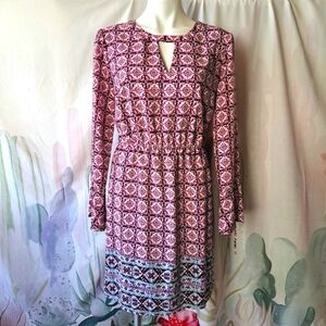 CANDIE'S Blue Paisley Print Fringed Bell Sleeve Dress - Size XS