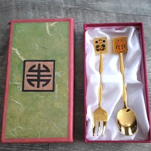 Elegant bamboo Chopsticks and porcelain Spoon Set