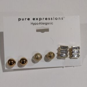Expressions Set of 3 Gold tone Crystal Hypo-Allergenic Women's Stud Earrings