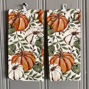Mud Pie Fall Tea towel set, pumpkins, truck, cream