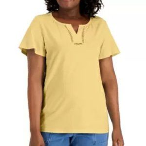 Karen Scott Cotton Flutter-Sleeve Top, Citron Aura