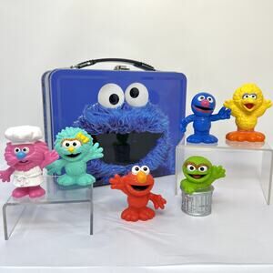 Sesame Street Cookie Monster Gen 2 Fun Tin Box Storage W/ 6 Action Figures