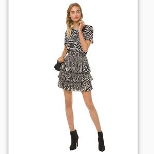 MK Michael Kors Dress XS Tiger Animal Print Georgette Tier Crinkle Summer Party