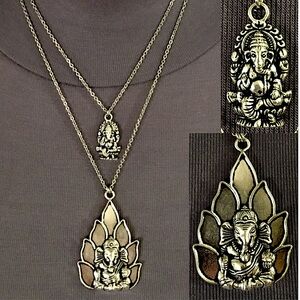 “Lucky Ganesh” Silver Hindu Elephant God Handmade 2-Layer Adjustable Necklace