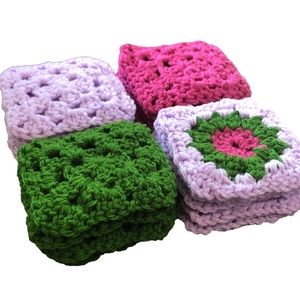 Crochet, Vintage White and colorful Flowers Cotton Granny Squares