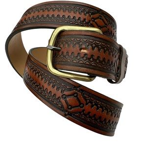 Vintage Western Hand Tooled Brown Leather Belt Full Grain Womens Size L