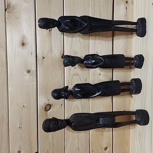 Pair Of African Tribal Hand Carved Wooden Statues Figures Wood Tribal Folk Art