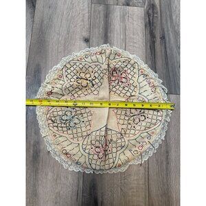Vintage Hand-Embroidered Butterfly Lace Round Pillowcase Doily Victorian Flaws