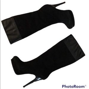 Vintage Black Genuine Suede Zip Boots Made in Italy Y2K Heeled 7.5 Minimalist