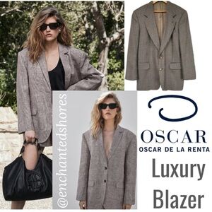 Sag Harbor women’s size 14 blazer wool blend black white herringbone academia