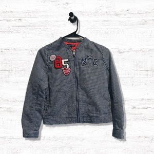 Zenergy by Chico's French Terry Indigo Stretch Embroidered Jean Jacket, Sz 1 (M)
