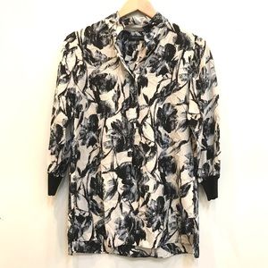 Lafayette 148 Women's Caddie Blouse 4 Floral Striped 3/4 Zip Sleeve Top Career