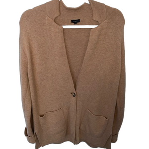 Talbots Lamb Wool Blend W/ Pockets Tan Fall Winter Sweater Cardigan Size M