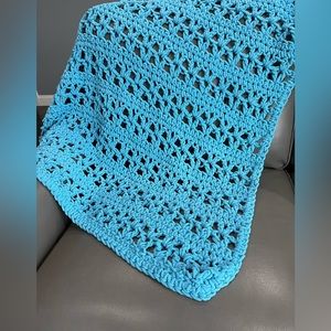 HAND Crocheted CHUNKY Lapghan BLUE Lap BLANKET
