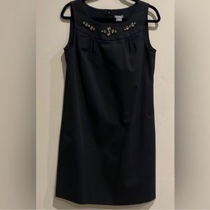 Ann Taylor Navy Blue Embroidered Classic Retro Knee Length Shift Dress Size 0