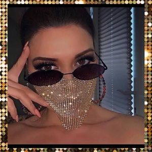 New Glam Gold simulated diamond chain dancer masquerade mask face chain mail