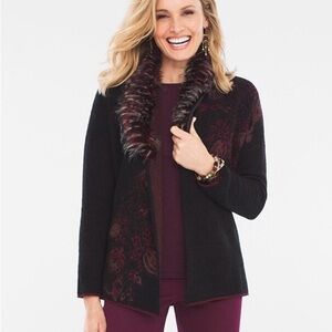 JM Collection size large black cardigan with silver metallic threading
