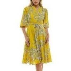 Banana Republic Womens Dress Size 14 Blue Floral Modest Office Long Sleeve