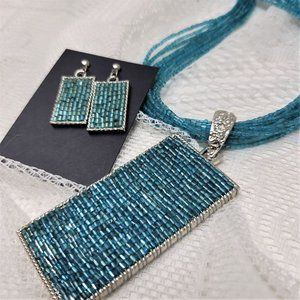 Lea Sophia Multi Strand Blue Green Beaded Necklace Layered Statement Jewelry