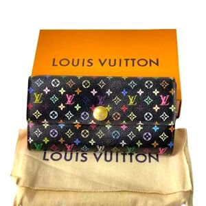Louis Vuitton long black coated canvas monogrammed multicolour wallet