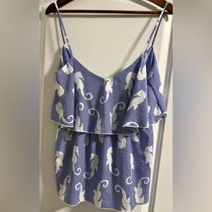 Women’s Seahorse Frilly Shirt with spaghetti straps by BlueTique. Size Medium