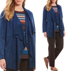 Blue Open Front Cardigan 2X Tie-Dye Stretch