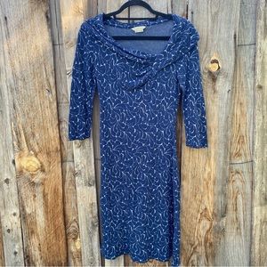 Royal Robbins blue fitted dress, 3/4” sleeves, wear off the shoulder, Medium