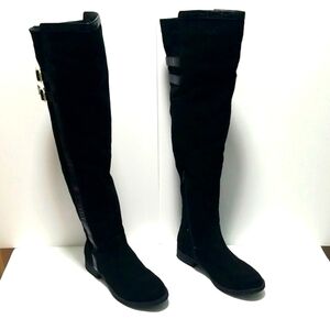 H By Halston Black Over The Knee Boot Size 6 Quilted Front Stretchy Back Suede