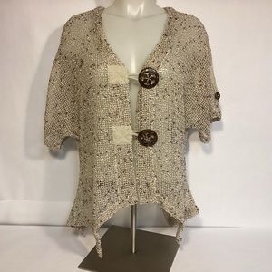 Massini Women’s Size 1X Tan Drape Front Cardigan Ruched Sleeves