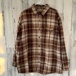 Woolrich Men’s Long Sleeve Snap Closure Shirt Jacket Size XL Plaid British Tan