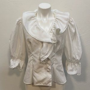 Vtg Liz Claiborne Ruffled Blouse White Bell Sleeve Top Size Medium