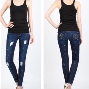 NEW* Siwy Dark Wash Muse Paint Drip Spatter Hannah Skinny Jeans