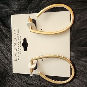 DESIGNER STYLE GOLD AND PAVE CRYSTAL HOOP EARRINGS. ( see video)