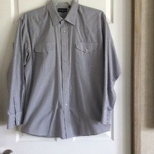 Wrancher By Wrangler Blue Plaid Men Button Down Shirt White Pearl Snap Size L