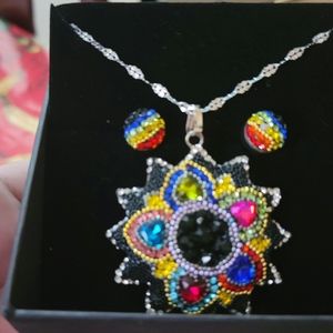 9.25 silver medal chain and earrings set