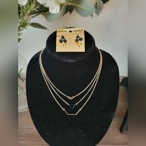 Gold toned geometric necklace & earrings