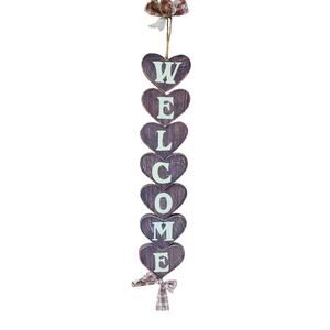 Primitive Country Wooden Heart "Welcome" Sign –Burgundy Folk Art Decor Farmhouse