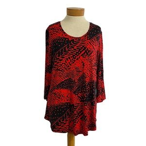 JM Collection Red Black, Print Long Sleeve High Low Top Med