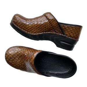 Sanita Bronze Snake Print Patent Leather Comfort Clogs Nurse Chef Size 37