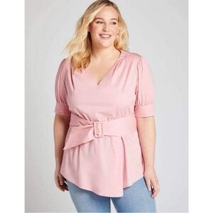 Sincerely Jules Pink Blouse Puff Sleeve Top Pleated Sweetheart Neck L