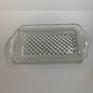 VTG Clear Glass Deviled Egg Plate 11" Hobnail Scalloped Edge Snack Tray Indiana?