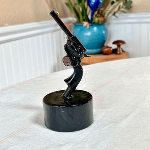 Vintage Silver Revolver Pistol Hat Lapel Pin Button