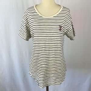 H&M Women's Extra Small Black White Striped Scoop Neck Short Sleeve Tee